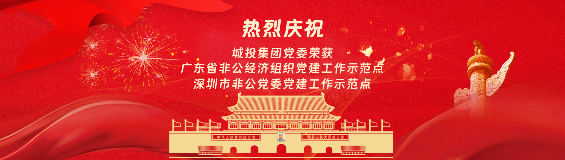 在上級黨委的正確領導下,在城投集團的大力支持下,集團黨委緊緊圍繞企業發展戰略,將黨建引領核心貫穿始終,以五心工程(即思政建設核心工程、經營發展中心工程、企業文化向心工程、黨建品牌匠心工程、服務基層愛心工程)為抓手,大膽探索,勇于突破和創新,不斷形成城投黨建特色,有效輸出城投實踐經驗,充分發揮紅色引擎作用,先后獲得深圳市非公黨委黨建工作示范點、深圳市兩新組織黨建工作示范點、深圳市文明單位、深圳市先進基層黨組織、廣東省非公有制經濟領域黨建工作示范點等榮譽稱號。